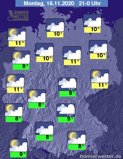 Die Temperaturen sinken am späten Abend auf Werte um 11 Grad in der Altmark und um 8 Grad an der Saar.