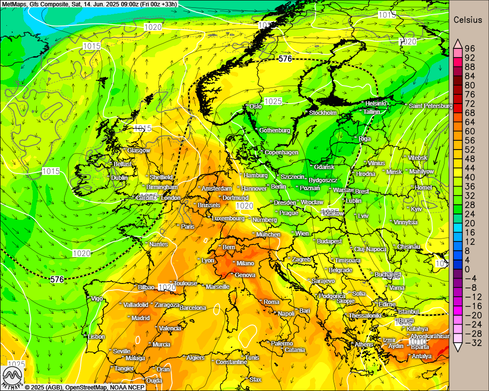 Die Temperaturen erreichen heute Höchstwerte um 23 Grad auf Usedom und um 36 Grad in Frankfurt am Main.