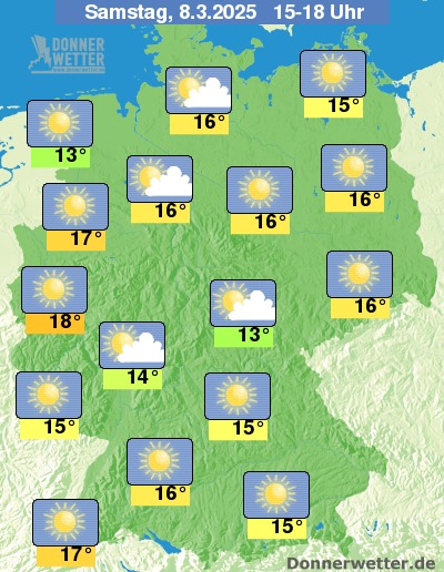 Die Temperaturen erreichen am Nachmittag Höchstwerte um 13 Grad in Ostfriesland und 18 Grad in Köln.