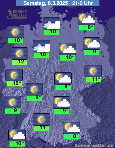 In der Nacht zum Sonntag ist der Himmel sternenklar oder es ist nur gering bewölkt. Gebietsweise kann sich in der Nacht Nebel bilden. Es bleibt trocken.