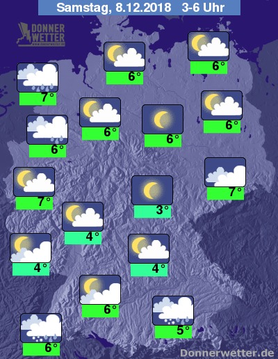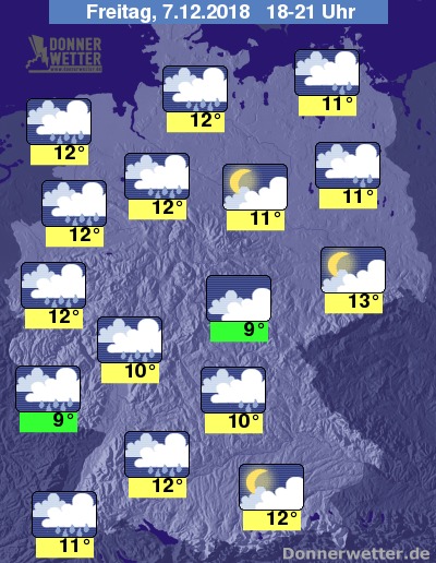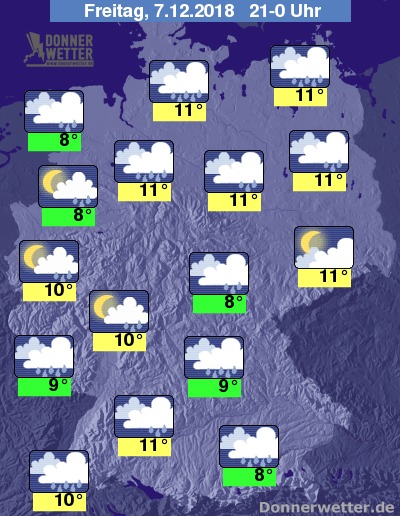 Während der zweiten Nachhälfte beruhigt sich das Wetter vorübergehend und der Himmel klart teilweise auf, bevor von Westen neue Regenfälle oder Schauer ins Land ziehen. In den Alpen sinkt die Schneefallgrenze kurzzeitig unter 1000 m.