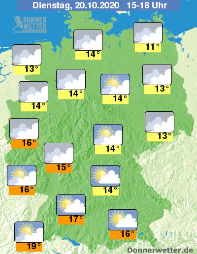 Die Temperaturen bewegen sich allgemein zwischen 11 und 15 Grad, im Süden und Westen können mildere 16 bis 19 Grad erreicht werden.