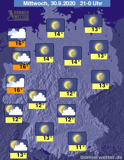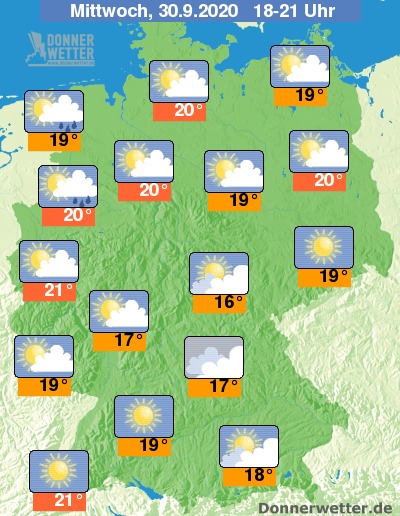 Am Abend kann es vom Niederrhein bis ins westliche Niedersachsen hinein noch stellenweise tröpfeln oder leichte Schauer niedergehen. In den anderen Gebieten bleibt es teils heiter, teils wolkig und allgemein trocken.