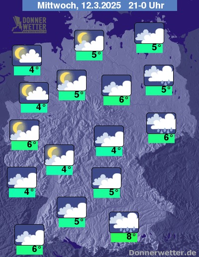 In der Nacht zum Donnerstag fällt im Osten und Südosten zeitweise Regen, in höheren Lagen auch Schnee. In den übrigen Landesteilen bleibt es bei größeren Auflockerungen weitgehend niederschlagsfrei.