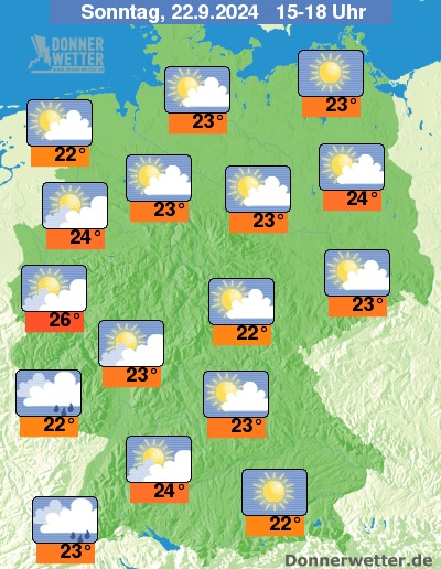 Die Temperaturen erreichen Werte um 22 bis 26 Grad.