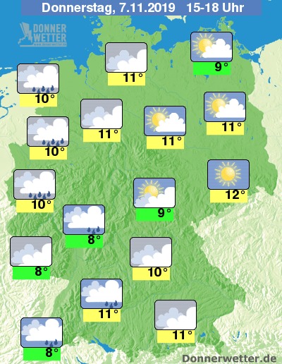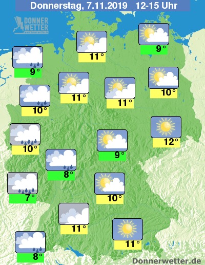 Die Temperaturen liegen dabei zwischen 7 Grad in Saarbrücken und 12 Grad in Dresden.