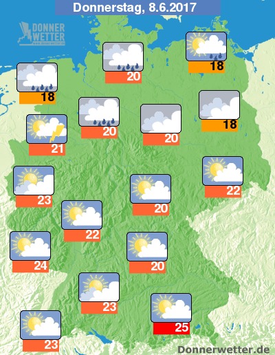17 bis 21 Grad im Norden, sonst 22 bis 27 Grad
