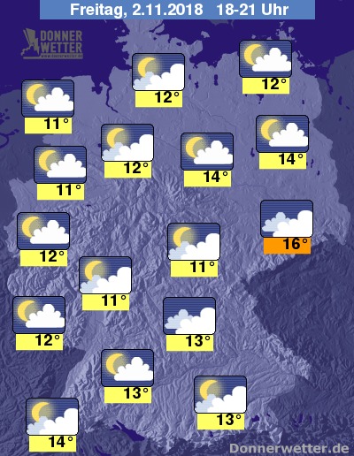Während der zweiten Nachthälfte breiten sich Nebelgebiete vor allem im Norden aus. Sonst präsentiert sich der Himmel teils bewölkt, teils sternenklar. Regen fällt nicht mehr. Bis zu den Frühstunden kühlt die Luft auf 2 bis 8 Grad ab, bei längerem Aufklaren besteht leichte Frostgefahr, am mildesten sollte es in Sachsen und Brandenburg, sowie im Breisgau bleiben.