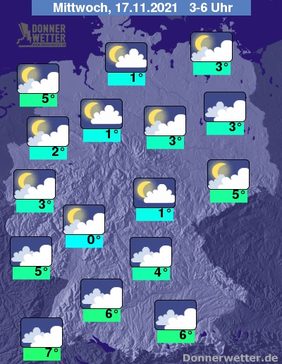 In der Nacht zum Mittwoch bleibt es über dem Süden weitgehend bedeckt, sonst ist es oft locker bis aufgelockert, teils aber ebenso dicht bewölkt! Es bleibt trocken bei 7 Grad in Freiburg und bis 0 Grad in Wiesbaden. Stellenweise bildet sich Nebel, dabei besteht die Gefahr von Reifglätte!