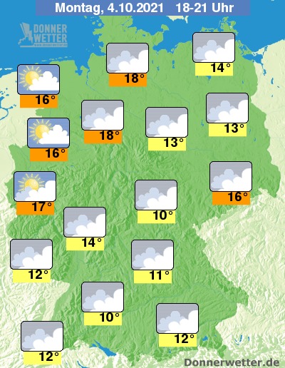 Heute Abend lockert die Bewölkung im Nordwesten der Republik verbreitet auf. Im übrigen Bundesgebiet bleibt es meist dicht bewölkt und hier und da ist auch ein wenig Regen möglich, zumeist bleibt es aber trocken. Die Temperatur liegt bei nur 10 Grad im Raum Stuttgart und bis 18 Grad in Hamburg.