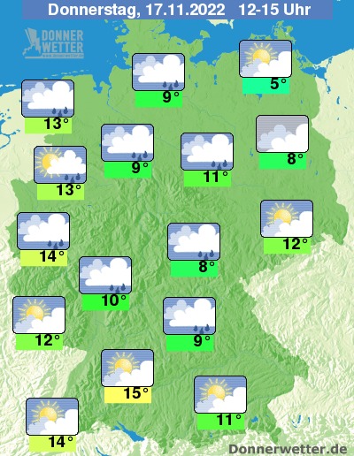 Heute Nachmittag bleibt es verbreitet stark bewölkt oder bedeckt, dazu bilden sich einzelne Schauer. Die Temperatur liegt bei nur 5 Grad in Vorpommern und bis zu 15 Grad im Stuttgarter Raum. Im Norden weht ein teils stürmischer Wind, an der See herrscht verbreitet Sturm.