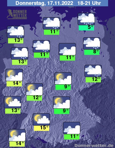Heute Abend fällt im Norden und Osten unter dichten Wolken gebietsweise Regen. Im übrigen Land ist es oft aufgelockert, teils auch stark bewölkt und dazu überwiegend trocken. Die Temperatur liegt bei 5 Grad in Neubrandenburg und 15 Grad in Stuttgart. An den Küsten ist es weiterhin verbreitet stürmisch.
