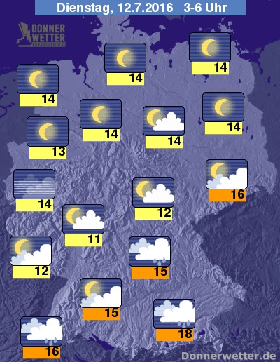 In der kommenden Nacht zeigt sich der Himmel über Süddeutschland meist bedeckt und es bilden sich gebietsweise Schauer, selten auch Gewitter. Über der Nordhälfte Deutschlands ist es dagegen verbreitet sternenklar und dazu trocken. In den übrigen Landesteilen ist es teils locker, teils aufgelockert bewölkt und trocken. Die Temperatur sinkt auf 18 Grad in München und etwa 11 Grad am Westerwald.