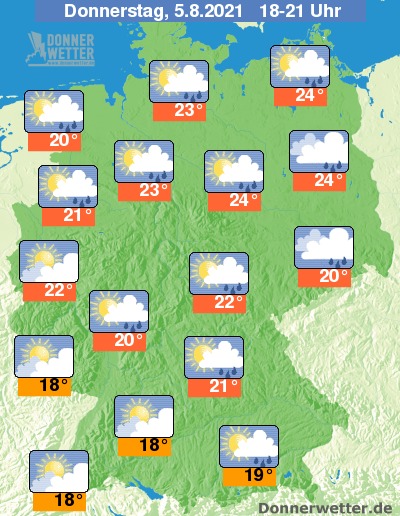 Heute Nachmittag zeigen sich hier und da Auflockerungen oder heitere Abschnitte, häufig ziehen aber dichte Wolken durch, dabei bilden sich gebietsweise Schauer, vereinzelt entwickeln sich zudem auch Gewitter. Die Temperatur steigt auf teils nur 16 Grad im Saargau und bis 24 Grad in Berlin.
