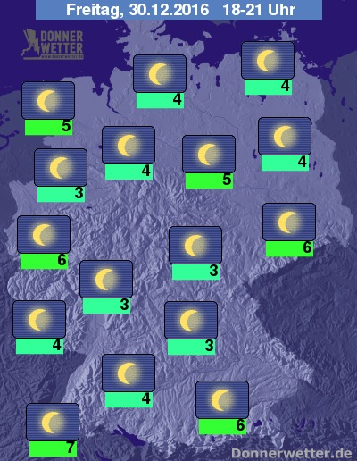Heute Abend zeigt sich über Deutschland ein sternenklarer Himmel, dabei bleibt es überall trocken. Die Abendwerte liegen anfangs bei 3 bis 7 Grad C.