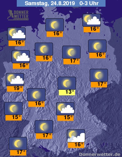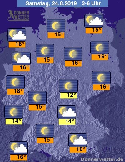 In der Nacht ist der Himmel über weiten Landesteilen sternenklar, an den Küsten, im Südosten sowie im weiteren Verlauf auch am Oberrhein kann sich in der Nacht auch Quellbewölkung bilden. Schauer sind in der Nacht nicht zu erwarten.