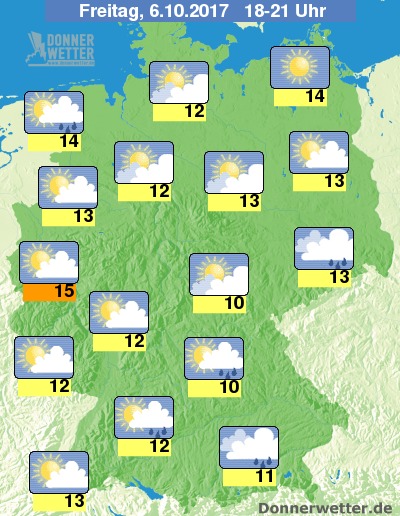 In der Nacht zum Samstag sind im Alpenvorland zunächst weitere Schauer möglich. Im übrigen Land ist es hingegen verbreitet nur locker bis aufgelockert, hier und da auch stark bewölkt und zunächst überall trocken. Zum Morgen hin ziehen im Norden allerdings dichte Wolken mit zeitweiligem Regen auf. Die Temperatur sinkt auf 11 Grad an der Nordsee und bis 4 Grad im Saargau.