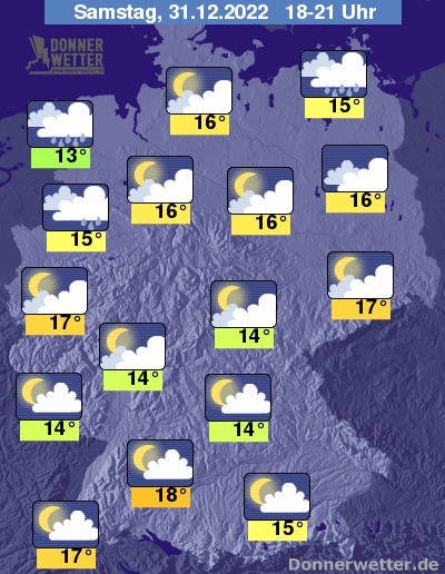 Heute Abend lockert es auch über der Nordhälfte des Landes hin und wieder auf, zumeist bleibt es aber stark bewölkt und in Küstennähe fällt gebietsweise Regen. Im Süden ist es meist nur locker bewölkt, hier bleibt es trocken. Die Temperatur liegt bei 13 Grad in Wilhelmshaven und 18 Grad in Stuttgart. Im Süden ist es schwachwindig, sonst weht ein verbreitet starker bis stürmischer Wind mit Sturmböen. An der Nordsee herrscht verbreitet Sturm.