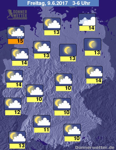 In der Nacht zu Freitag klart es dann auch im Norden vorübergehend auf und fast landesweit funkeln die Sterne. Die Temperaturen fallen auf Tiefstwerte zwischen 10 Grad in Bayern und 15 Grad an der Nordsee.
