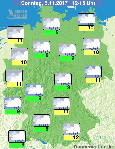 Heute Nachmittag hält sich über dem Land eine weitgehend dichte Wolkendecke. Vor allem im Süden und Osten fällt dazu oft auch langanhaltender Regen. Im Norden und Westen klingen die Niederschläge hingegen nach und nach ab. Die Temperatur liegt bei kühlen 9 bis 12 Grad.