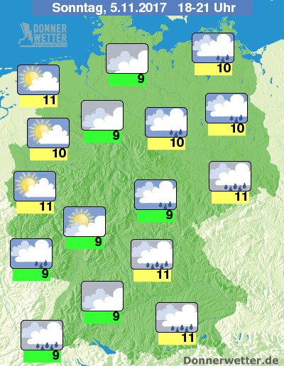 Heute Abend heitert der Himmel vom Niederrhein bis zur Nordsee hin auf und hier bleibt es auch trocken. Über der Osthälfte und im Süden fällt unter dichten Wolken zeitweise Regen. Im übrigen Bundesgebiet ist es zwar meist stark bewölkt, Regen fällt dazu jedoch nur noch selten. Die Temperatur liegt bei 9 bis 11 Grad.