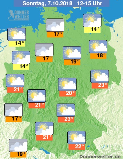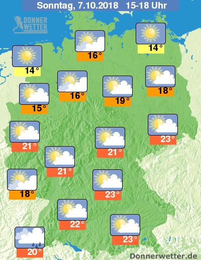 Höchstwerte am Sonntagnachmittag um 23 Grad C.