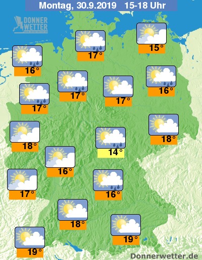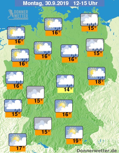 Am Mittag sind im Norden und in der Mitte des Landes immer wieder Schauer möglich und es bleibt stürmisch. Im Süden bleibt es meist trocken. Der Himmel ist im Großteil des Landes stark bewölkt. Richtung Nordsee und im Süden des Landes schafft es die Sonne immer wieder durch die Wolken. Die Temperaturen liegen zwischen 14 Grad im Thüringer Land und 19 Grad in Augsburg.