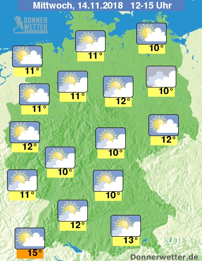 Am frühen Nachmittag haben sich die meisten Nebelfelder aufgelöst und der Sonne Platz gemacht. Insbesondere im Nordosten können sich Wolkenfelder auch hartnäckiger halten.