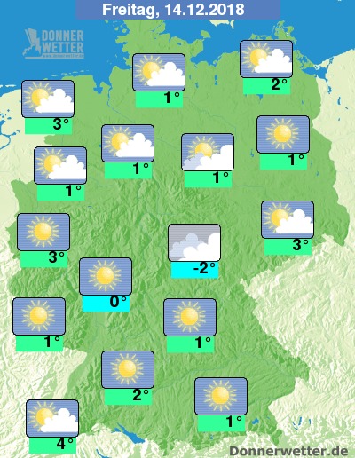 Die Höchsttemperaturen liegen meist zwischen 0 und 5 Grad. Im Thüringer Becken, sowie in den Mittelgebirgen gibt es auch leichten Dauerfrost.