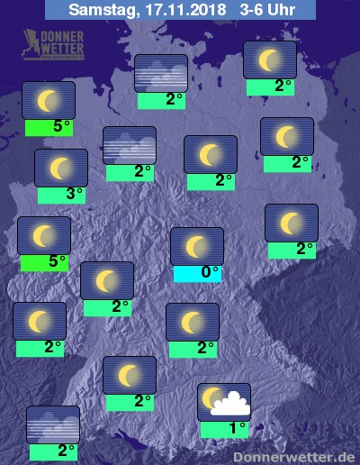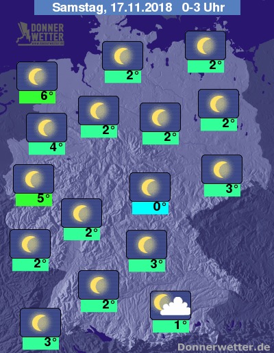 In der Nacht auf Samstag zeigt sich der Himmel meist sternenklar, in Alpennähe sowie am Oberrhein und entlang der Weser kann es auch locker bewölkt sein oder es bildet sich Nebel. Es bleibt trocken.