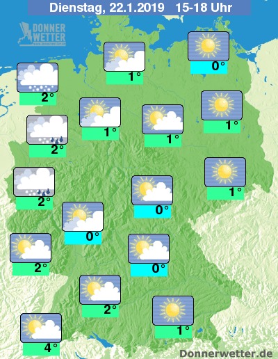 Im Laufe des Nachmittags verdichtet sich die Wolkendecke im Westen immer mehr und dort wo Benelux nahe ist setzt leichter bis mäßiger Niederschlag ein. Im Flachland meistens als Schneeregen, oberhalb 200 bis 300 m in der Regel Schnee. Ab dem Abend muss also hier mit Glätte gerechnet werden. Sonst bleibt es trocken.