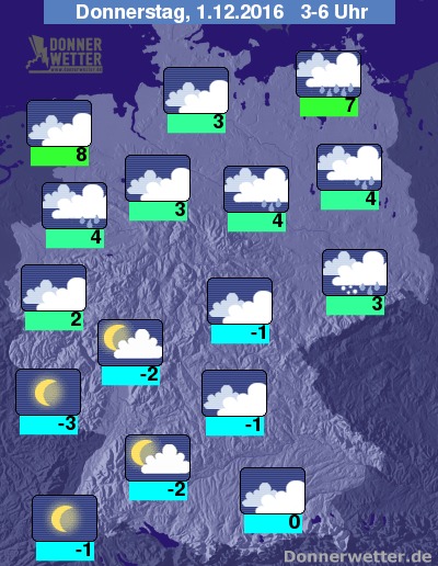Die Temperaturen sinken auf 8 Grad C an der Nordsee und -3 Grad C in der Eifel.