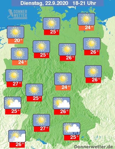 Die Temperaturen liegen am frühen Abend noch zwischen 20 und 27 Grad.