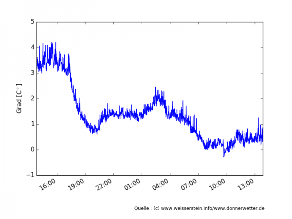 Nur wenig über 0 Grad C, in den Mittelgebirgen und in Bayern ist es kalt geworden. Nachts verbreitet nur noch um die 0 Grad C.