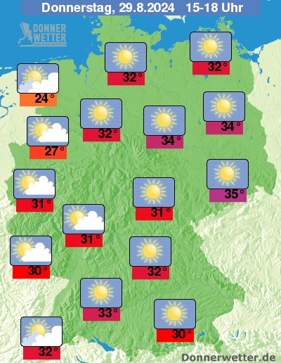 Die Temperaturen erreichen Höchstwerte um 24 Grad auf Sylt und heiße 35 Grad in Görlitz.