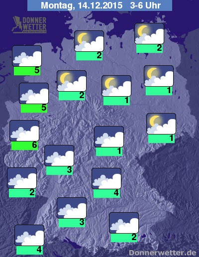 In der Nacht zum Montag ist es im Norden und Osten meist aufgelockert bewölkt und es bleibt trocken. Weiter nach Südwesten ist es jedoch weitgehend stark bewölkt oder der Himmel zieht sich im Nachtverlauf zu, dabei bleibt es jedoch weitgehend trocken. Die Temperatur sinkt auf 6 Grad in Köln und bis 1 Grad in Berlin. Besonders im Süden und Osten ist bei Bodenfrost mit stellenweiser Glätte durch überfrierende Nässe zu rechnen!