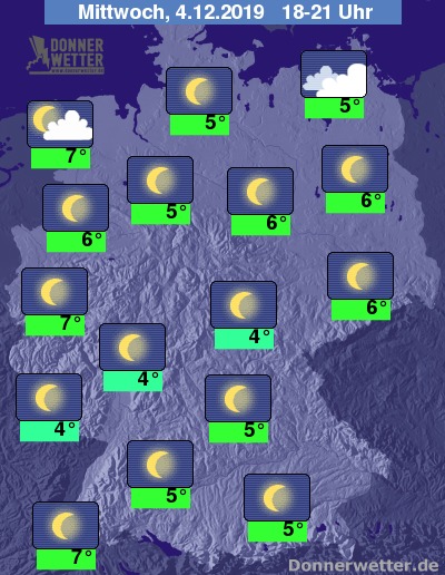 Tiefstwerte um 4 bis 7 Grad am Abend.