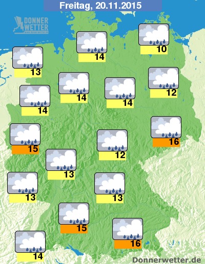 Der Freitag hat zunächst aber noch milde Temperaturen um 10 Grad C an der Ostseeküste und 16 Grad C in Dresden im Gepäck. Verbreitet muss dann mit Regen und teils stürmischem Wind gerechnet werden.