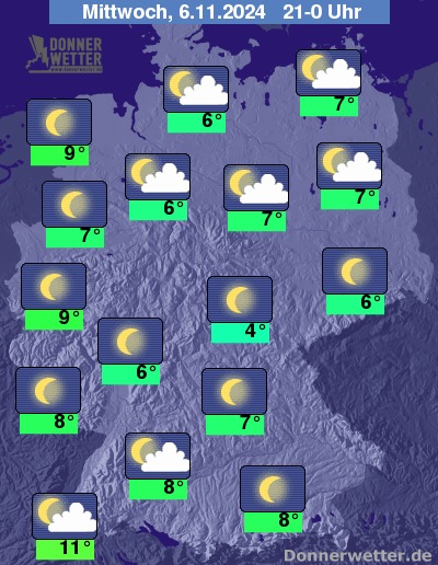 In der Nacht zum Donnerstag hält sich weiterhin verbreitet Nebel oder Hochnebel, gebietsweise ist es auch sternenklar oder nur gering bewölkt. Es bleibt trocken.