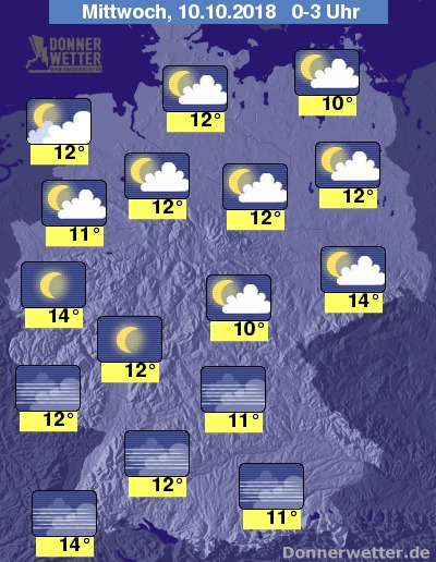 In der Nacht zeigt sich der Himmel in der Nordosthälfte des Landes meist locker bewölkt, im Südwesten ist es teils sternenklar, vielfach kann sich auch Nebel bilden. Es bleibt trocken.