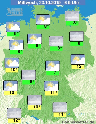 Die Wochenmitte startet vielerorts mit Nebelfelder, die sich in den Früh- und Vormittagsstunden auch noch hartnäckiger halten können. Im Westen und Nordwesten sowie im Vogtland und dem Fichtelgebirge wechseln sich Sonne und Wolken am Morgen ab. Schauer sind nicht zu erwarten.