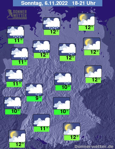 Heute Abend zieht ein großes Regenband von Südwesten her über die Nordwesthälfte Deutschlands hinweg. Viele und oft dichte Wolken ziehen auch über den Süden und Osten des Landes, dabei bleibt es aber weitgehend trocken. Die Temperatur liegt bei 9 Grad in Wiesbaden und 12 Grad in Berlin. Im Westen und Norden ist es teilweise stürmisch, an der Nordsee herrscht überwiegend Sturm.