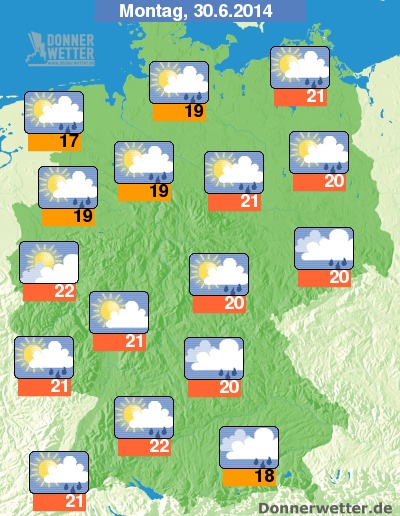 Am heutigen Montag müssen wir uns erneut auf einen wechselhaften Tag mit Schauern und einzelnen Gewittern einstellen, jedoch hat auch die Sonne hier und da eine Chance. Die Temperaturen erreichen für die Jahreszeit unterdurchschnittliche Werte zwischen 17 Grad an der Nordseeküste und 22 Grad in Köln und Karlsruhe.