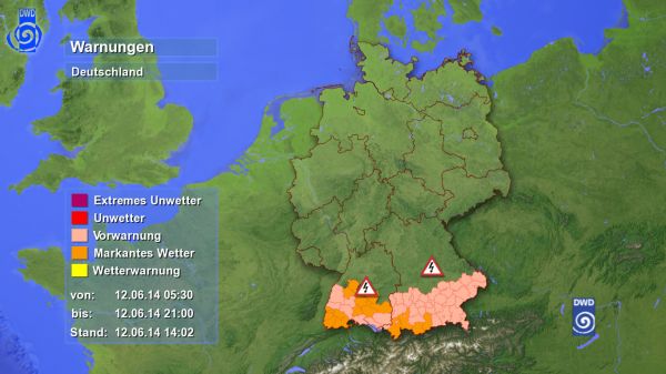 Vielfach freundlich und trocken. Es bestehen zwischen den Vogesen und dem Bayerischen Wald weiterhin eine lokale Gewittergefahr.