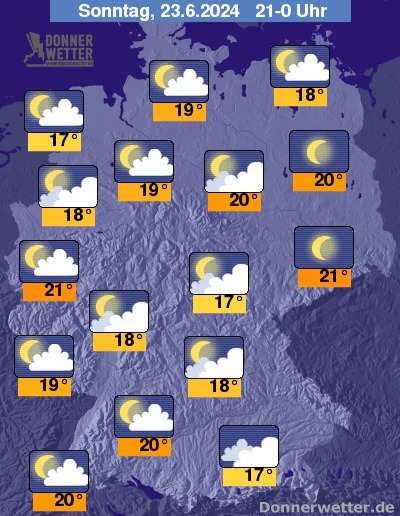 In der Nacht zum Montag zeigt sich der Himmel über dem Alpenrand und dem südöstlichen Bayern stark bewölkt, sonst überwiegt lockere Bewölkung oder es ist sternenklar. Gebietsweise kann sich in der Nacht Nebel bilden. Es bleibt trocken.