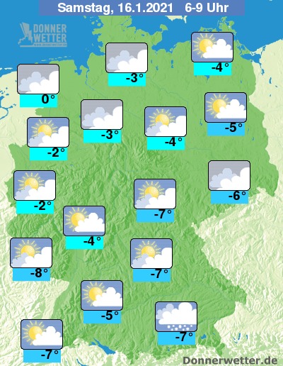 Die Temperaturen liegen in den Frühstunden bei Werten um -8 bis 0 Grad.