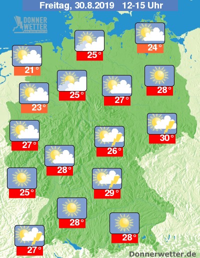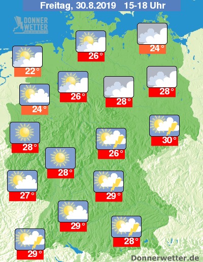Die Temperaturen erreichen Höchstwerte um 22 Grad in Emden und um 30 Grad in Görlitz.