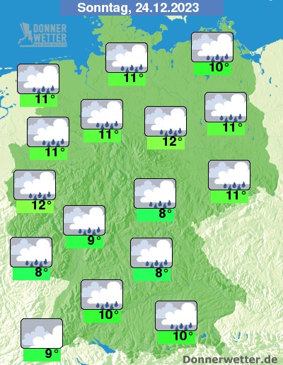 Der Himmel zeigt sich am Sonntag meist stark bewölkt oder es ist bedeckt, dabei muss in weiten Landesteilen mit Regen gerechnet werden; vor allem in den Staulagen der Mittelgebirge kann dieser auch kräftig und anhaltend ausfallen.