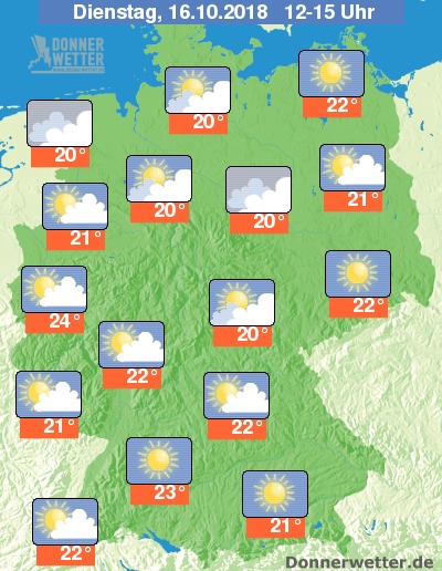 Im Verlaufe des Nachmittags bleibt es oft freundlich, zum Teil strahlt die Sonne längere Zeit. Es bleibt aber nicht ganz ausgeschlossen, dass sich irgendwo im Norden oder im Bereich der Mittelgebirgen vielleicht mal eine Schauerwolke zusammenbraut.