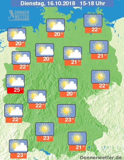 Die Temperaturen steigen regional noch etwas an und erreichen im Rheinland durchaus wieder spätsommerliche 25 Grad.